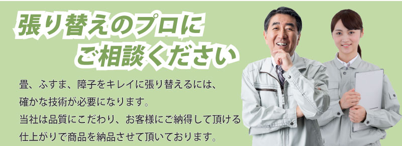 畳・襖・障子の選び方にも注意してみましょう。まず畳は、実際に畳表を見て触ってみましょう。品質によって肌ざわり・弾力性などが異なります。同様に畳床でも、耐久性・断熱性などが違ってきます。襖は、意匠・耐久性・施工法などでグレード分けされています。デザインも考えながら、襖紙・下地・縁・引手とそれぞれ選んでいきましょう。障子だと、障子紙は光を拡散する効果があるので選び方次第で部屋の明るさが変わります。他にも破れやすさが気になるのであれば、プラスチック製といったものがあります。また、断熱性や通気性なども確認してみましょう。このように商品選びには多くのポイントがあります。そのため、いつでも質問や相談が気楽にできて、要望に丁寧に答えてくれる業者だと安心ですね。